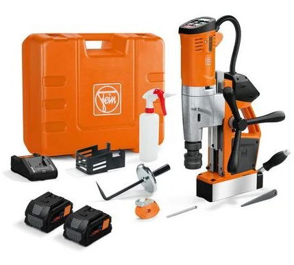 Fein AKBU 35 PMQW AS Set akkus szénkefe nélküli univerzális mágnesállványos fúrógép (2 x 8.0 Ah Li-ion akkuval)