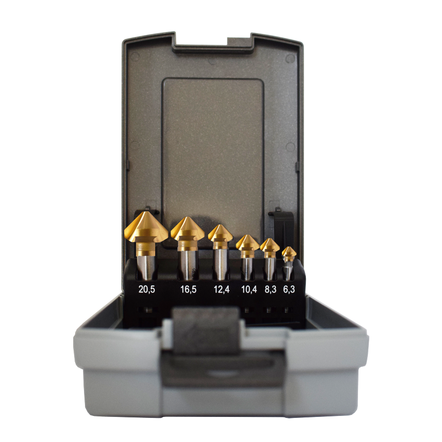 Abraboro HSS-TiN kúpos süllyesztő készlet műanyag dobozban, 6 részes